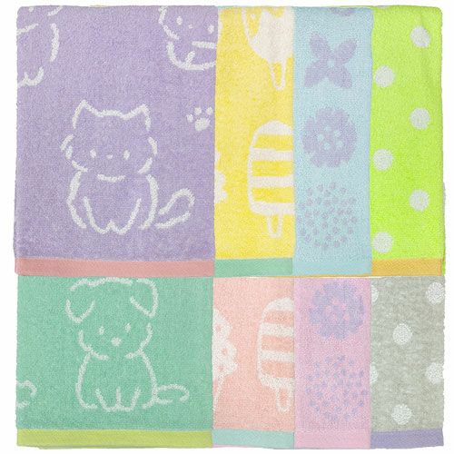 タオル ウォッシュタオル ハーティーアニマル WO490628、WO490629 キッチン 洗顔 掃除 普段使い 学校 保育園 こども園 幼稚園