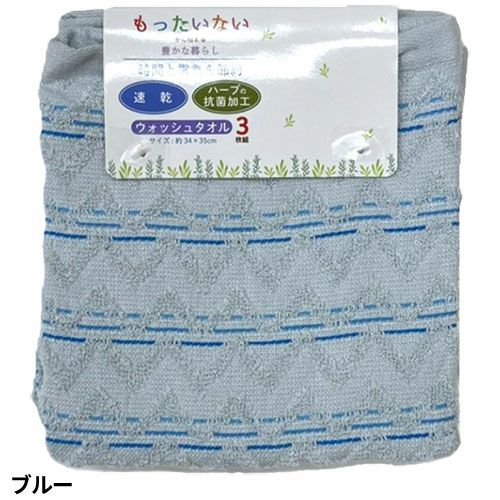 タオル ウォッシュタオル 3枚組 抗菌速乾Dヘリンボーン WO600601、WO600604、WO600605、WO600626、WO600629 キッチン 洗顔 掃除 普段使い 学校 保育園 こども園 幼稚園 抗菌 消臭 防虫 速乾 部屋干し