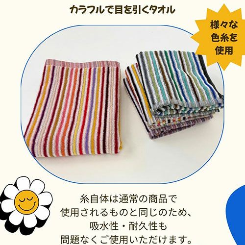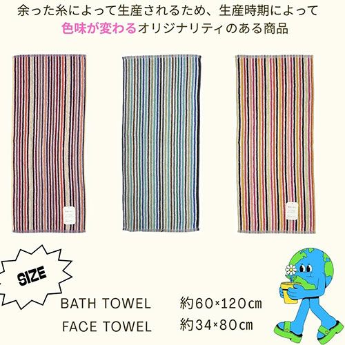 ●タオル生産工場で余ってしまった糸を使用した、地球にも環境にもやさしいタオル。●毎回違う糸を使用するため、生産時期によって色味が変わるオリジナリティのある商品です。●糸自体は通常の商品で使用されるものと同じため、吸水性・耐久性に問題ございません。●様々な色合いの商品が入る可能性がございます。当商品は残糸を使用している商品ですので、色味についてのご希望はお受けすることができません。