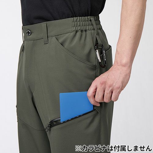 ほどよい保温性を備えつつストレッチ性に優れたスポーティなルックスが魅力のテックウェアシリーズ ・撥水性、ストレッチ性、保温など多彩な機能を発揮するテック素材・ワタリにリラックス感のある細身のテーパードカーゴパンツ・男女ユニセックスの着用に対応