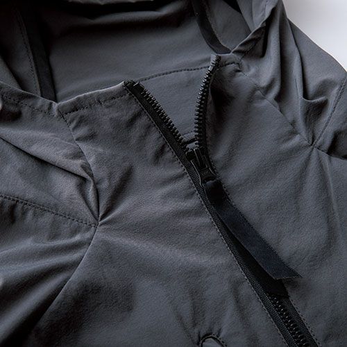 飽きのこないシンプルデザインのフーディは首元にうれしいギミックを搭載 生地断面の段ボール構造内、中空部分に暖かい空気の層を作ることで薄くても快適な保温性を確保軽量でストレッチ性の高い人気のダブルニット素材に、首元からネックウォーマーを引き出せる機能を搭載気温の変化に応じてネットウォーマーをオン・オフでき1枚で2タイプの着こなしが可能になっています。