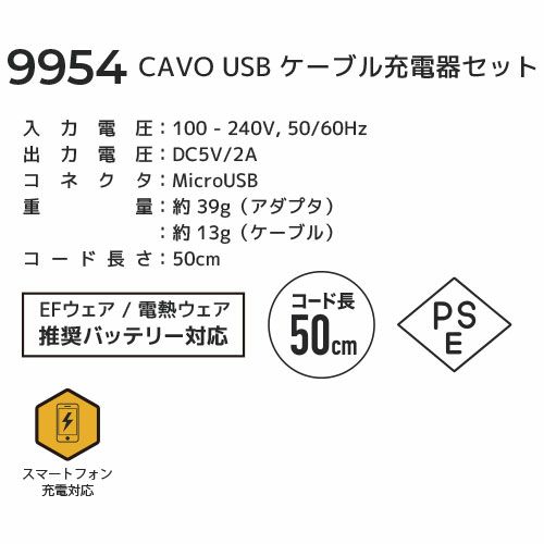EFウェア メンテナンス CUC 中国産業 Di-VaiZ CAVO USBケーブル充電器セット 9954 作業着 作業服 春夏 EFウェア 電熱ウェア