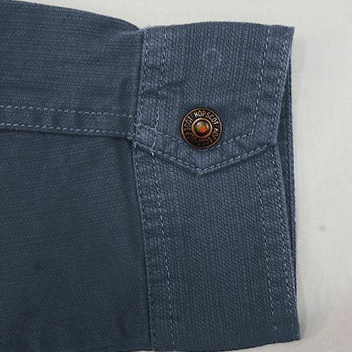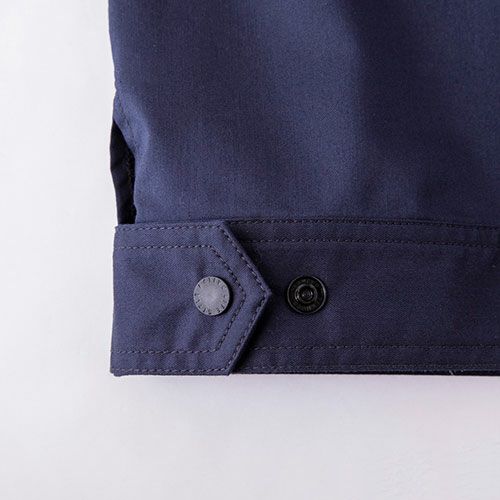 高級感のある綿100%の国産生地を使用洗いをかけた優しい肌触りとハードワークにも耐える耐久性が魅力 国産綿100%(クラボウ)の素材で、今カジュアルで流行りの変わり織りピケを使用した商品です。ワンウォッシュ加工を施し優しい肌触り。付属はYKKを使用し、シンプルなデザインで幅広い業種に最適。