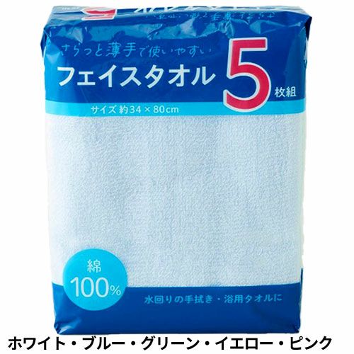 タオル フェイスタオル 5枚組 クリアカラー FN441110、FN441100 お徳用パック コスパが良い キッチン トイレ 洗顔 浴用 掃除 普段使い 銭湯 温泉 旅館 旅行