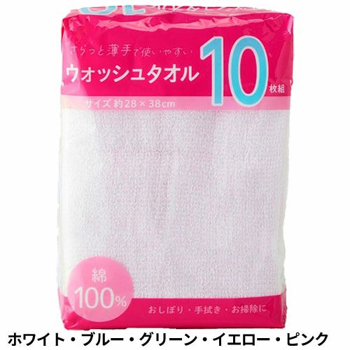 タオル ウォッシュタオル 10枚組 クリアカラー WN441110、WN441100 お徳用パック コスパが良い キッチン 洗顔 掃除 普段使い 学校 保育園 こども園 幼稚園