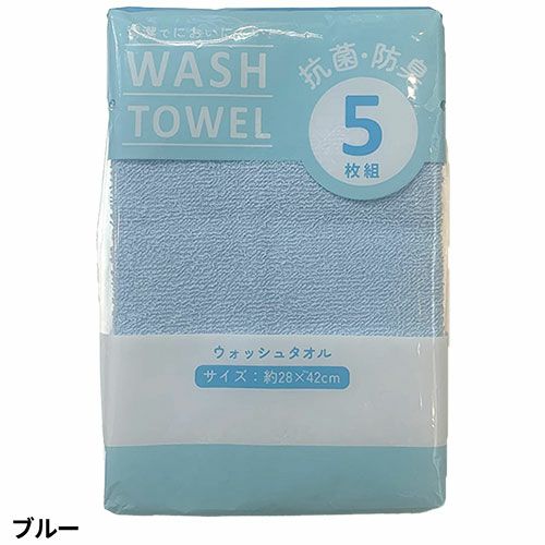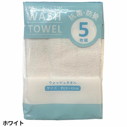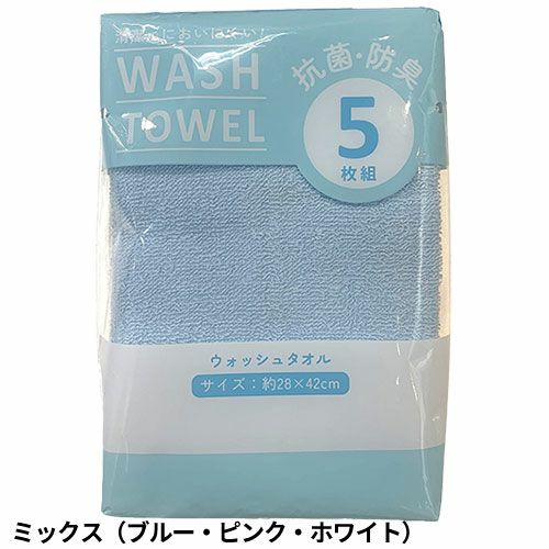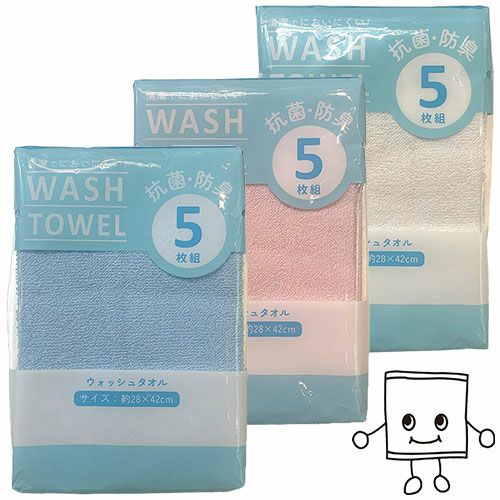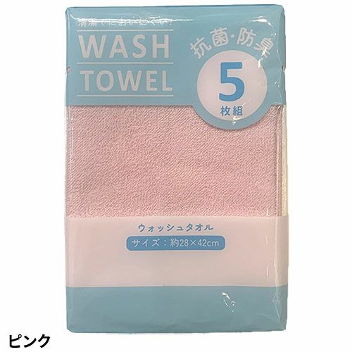 ●抗菌加工を施したウォッシュタオル5枚入りの徳用パックタオルです。●薄手の生地はさっと使うのに丁度いい。洗いやすく絞りやすい、そして乾きやすいので手軽にご使用いただけます。