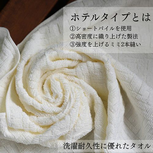 ●シンプルだから飽きが来ない高級感あふれる本格派のタオルです。●2本の糸を撚り合わせて作った双糸を使って織り上げているので毛羽落ちが少なく丈夫で洗濯に強く、吸水性に優れた仕様。●ホテルで使用されているタオルのように、短パイル仕様でしっかり織り上げたタオルです。●生地に高低差が出るように織り方を工夫し、柄を表現しています。凹凸感が出ることで肌にまとわりつきにくく、さらっとした使用感です。●★Oeko-TEX(R)Standard100認証工場で生産「Oeko-TEX(R)Standard100(エコテックス(R))」は、有害物質の影響を無くすことを目的とし繊維の全加工段階における原料から、最終製品に適用される世界的に統一された試験、認証システムです。この厳しい品質基準をクリアした場合にのみ認定タグが与えられます。