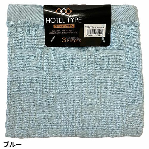 タオル ウォッシュタオル 3枚組 ホテルタイプ WO801401、WO801402、WO801403、WO801404、WO801409、WO801413、WO801414、WO801426、WO801428、WO801429 高級感 凹凸 柄 吸水性 品質 キッチン 洗顔 掃除 普段使い 学校 保育園 こども園 幼稚園