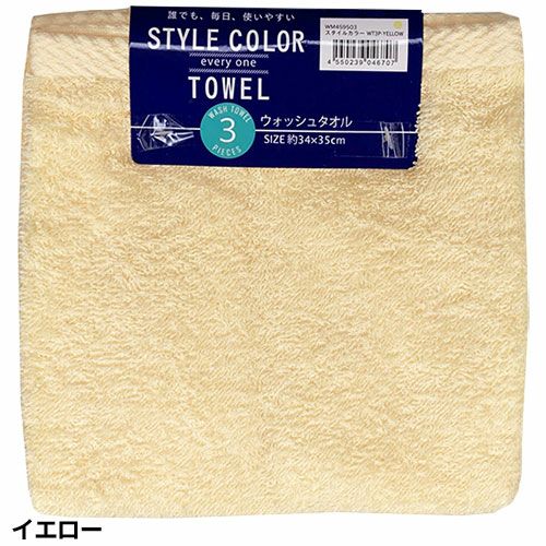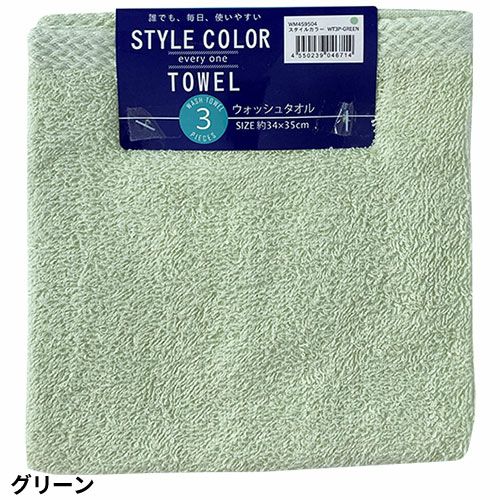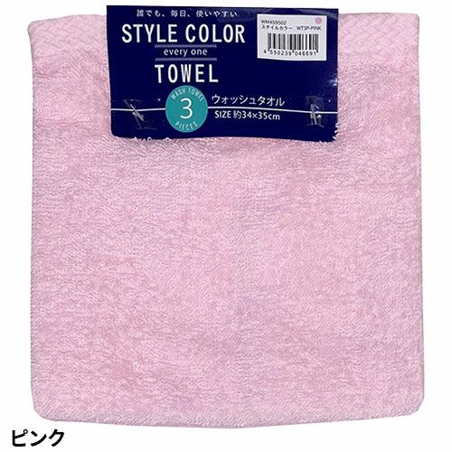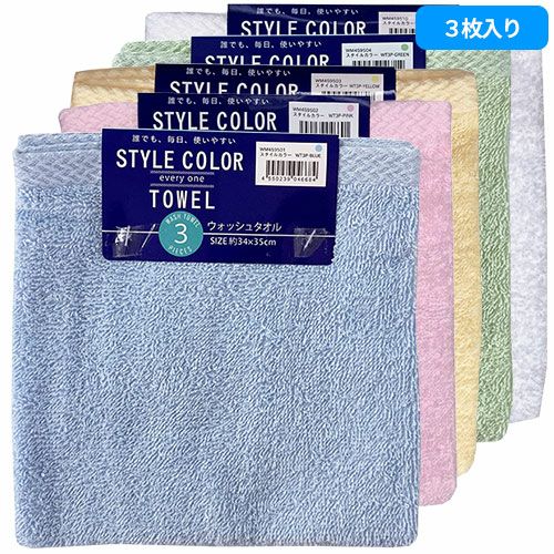 タオル ウォッシュタオル 3枚組 スタイルカラー WO801501、WO801502、WO801503、WO801504、WO801510 コスパが良い キッチン 洗顔 掃除 普段使い 学校 保育園 こども園 幼稚園