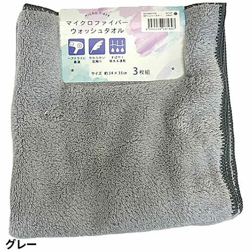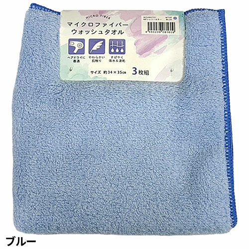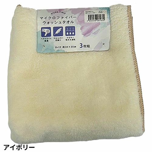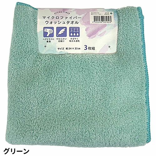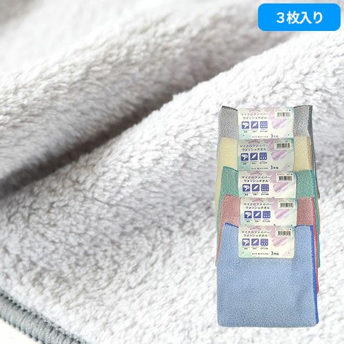 タオル ウォッシュタオル 3枚組 マイクロファイバー シェリーカラー WO490701、WO490702、WO490704、WO490713、WO490729 コスパが良い キッチン 洗顔 掃除 普段使い 学校 保育園 こども園 幼稚園