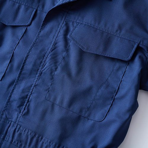 動きやすさと通気性を兼ね備えた長袖メッシュツナギ 生地は帯電防止、軽撥水、ヨコのびストレッチ素材です。脇にはメッシュを配置し通気性もアップセンターは前立てを付け、胸ポケットは大きな仕様になっており、さらにフラップ下に隠しファスナーを付けたプロ仕様の機能性ツナギです。