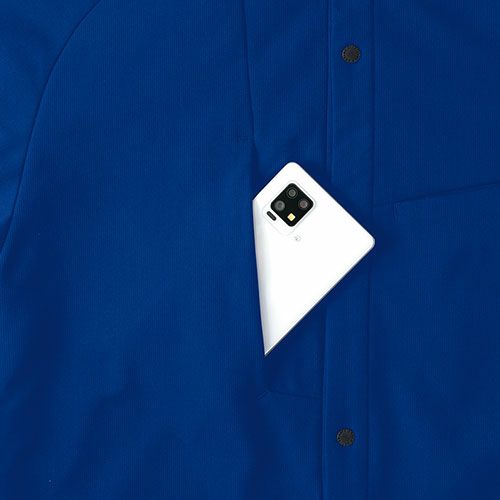 高品質な綿ナイロン素材が、ハイブランドと同等の高級感を醸し出すラグジュアリーモデル ●高品質な綿ナイロン素材を使用。ハイブランドウェアと同等の高級感があります●伸長率ヨコ方向約20%、伸長回復率(1時間後)約86%の超ストレッチ素材で動きやすい●引裂きや摩擦に強い素材で、ハードワークの方にもおすすめ●屈強なイメージのボンバーシルエットに、ライダーステイストをプラスした脇側ビッグポケットを採用。ワイルド惑とリッチ惑を両立させた唯一無二のデザイン●高級惑溢れる光沢惑のジャケットフロントファスナー、近未来惑を表現する止水タイプポケットファスナー、国産YKK社製を使用したタックボタン等、細部までこだわり抜いた1枚