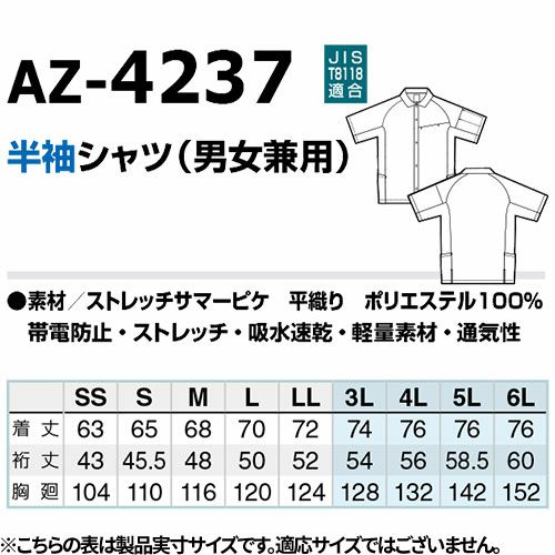作業服 半袖シャツ AITOZ アイトス TULTEX 半袖シャツ(男女兼用) AZ-4237 作業着 春夏 会社 工場 店舗 運送 制服 カラー豊富 サイズ豊富 動きやすい 制電 UVカット 軽量 吸汗速乾 遮熱
