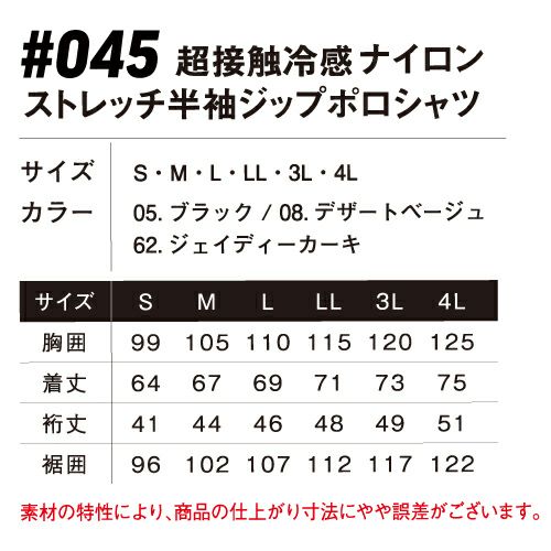 業界最強レベルの超接触冷感ポロシャツ!99%UVカット機能で暑い夏にピッタリ! ●一般基準値の約1.9倍の接触冷感指数を持ち合わせる、超最強の冷感ポロシャツ!●99%UVカット機能で夏の屋外作業も怖くない●パウダータッチのさらりとした肌触り●伸長率ヨコ約44%・タテ約15%の全方向ストレッチ素材で、動きやすく型崩れしにくい●経編のニット素材を採用しており、着心地がいいだけでなく、強度が高くハリコシがあるので、着用時にシワができにくい●吸汗速乾性・抗菌防臭性にも優れており、汗をかきやすい夏場にピッタリ●スタイリッシュなシルエットに、ファスナーやボタンなど細部にもこだわり抜いた、高級感あふれるデザイン