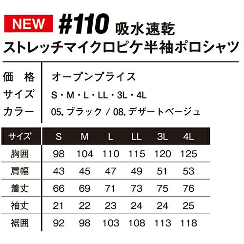 ワークシーンだけでなくスポーツウェアや普段着としても活躍する、オールラウンダーな冷感ポロシャツ ●高級感あふれるシャープなルックスは、着るシーンを選ばずワークシーンだけでなく様々な場面で着用可能●独自開発の素材により、一般的な天竺素材と比べ約1.8倍の優れた通気性を実現●優れた吸汗速乾性でさらっとした着心地●フルダル糸が透け感を軽減●UVカット96%で紫外線も怖くない●タテ36%・ヨコ45%の超ストレッチ性能で動きやすい●色落ちしにくく、抗ピリング性能付きで毛玉もできにくい●JIS基準値をクリアした接触冷感指数を有し、着用するとひんやり気持ちいい●便利なダブルポケットなどワークシーンに役立つ機能も満載●襟裏側のラバープリント加工、前立てオリジナル部ランサーボタンなど細部までこだわったデザイン