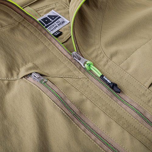 ●耐久性と接触冷感性に優れた定番のナイロン製作業服●生地裏オーバーロック糸の一部に制電糸を使用●ポケット入口を中心に補強のステッチワークをポインチにデザイン