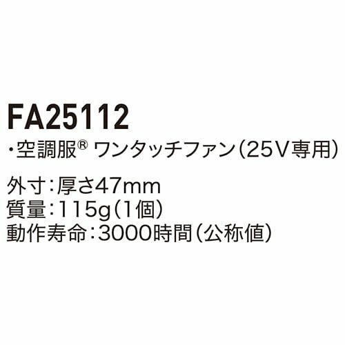 EFウェア ファン ジーベック XEBEC 空調服(R) 25Vワンタッチファン(2個) 2025年モデル FA25112 作業着 作業服 春夏EFウェア ファン