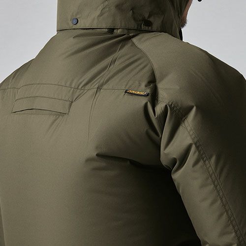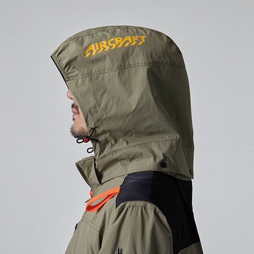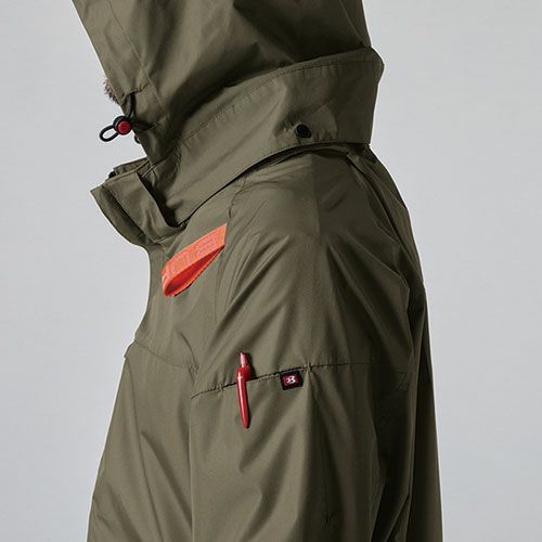 耐久性の高いポリエステルリップストップ生地を用いた本格的なミリタリーアイテムを思わせる機能的なタクティカルサイドファンプロダクト ●風がボディ全体を駆け巡るサイドファン取付設計モデル●遮熱効果(-10度)に優れたアルミコーティング加工と軽量、耐久性を備えたリップストップ素材●背ヨークに保冷剤(別売)を収納可能な通気エアダクトポケットを装備●ヘルメット収納フード(着脱可能)、フックハンガー、背ランヤードホールを配備しフルハーネスに完全対応●男性ユニセックスの着用に対応