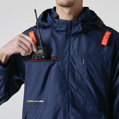 現代の企業ユニフォームニーズにフィットするスポーティなルックスと再生糸使用のエコロジカルなSDGsサイドファンプロダクト ●風がボディ全体を駆け巡るサイドファン取付設計モデル●軽量で空気漏れを防ぐ機能も備えた再生糸使用のエコロジカルなSDGs配慮素材●背ヨークに保冷剤(別売)を収納可能な通気エアダクトポケットを装備●ヘルメット収納フード(着脱可能)、フックハンガー、背ランヤードホールを配備しフルハーネスに完全対応●男性ユニセックスの着用に対応