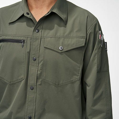 営業や建築業では、きっちりとした服装で信頼感を高めることが大切です。形態記憶仕様でいつでもシワを気にせず着用いただけます。また、シャツやワークスーツもご用意しているので、用途に合わせてお選びいただけます。