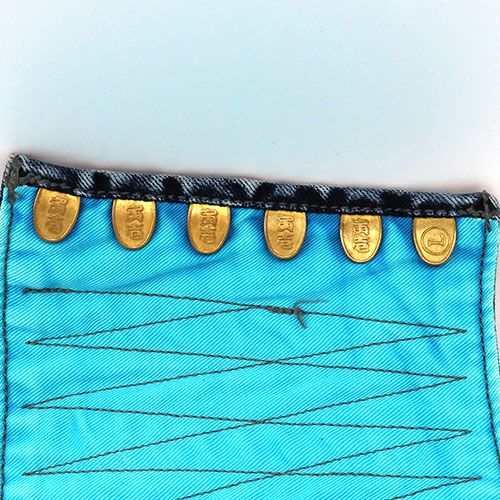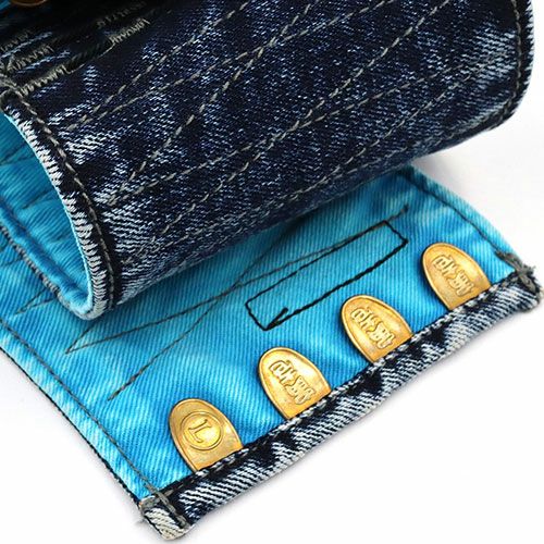 Wブリーチ(ケミカルウォッシュ)加工の定番デニムの手甲。黒の先染糸を用いて色落ちに深みを持たせました。ビンテージ加工によりラフに着こなせるユーズド感が特徴。素早い着脱を提供する4枚コハゼ手甲です。