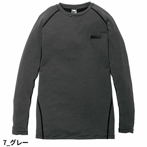 寅壱ファン待望の長袖クルーネックTシャツ(コンプレッション)登場 コンプレッション効果に裏毛ベア天(特殊な加工で裏面を起毛)で保温性と伸縮率をアップソフトな肌触りの中肉生地が魅力の冬に活躍する実力派インナー