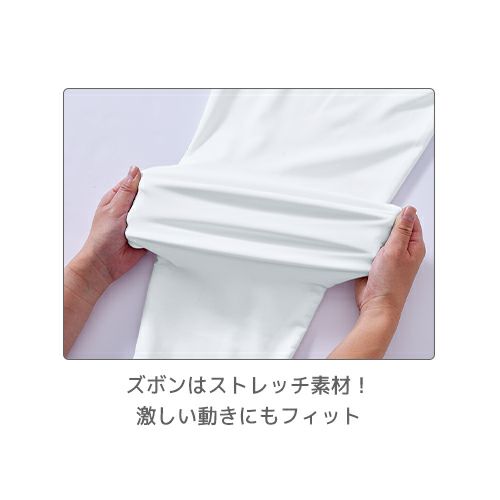 スポーティなルックスと耐久性、ストレッチ性がある最新の機能素材が魅力の現代の多様なユニフォームニーズに応える植物由来のエコロジカルなSDGsプロダクト ・植物由来の合成繊維を用いたエコロジカルなSDGs対応モデル・摩耗強度と耐久性に優れた2重織りのストレッチクロス(伸長率25%)・優れた帯電防止性を備えるJIS T8118適合プロダクト・すっきりしたテーパードシルエットがシャープなユニフォームスタイルを演出・男女ユニセックスの着用に対応