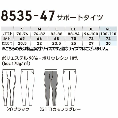 【メール便対応】防寒インナー 防寒着 メンズ サポートタイツ 8535-47 インナー 秋冬用スパッツ インナーパンツ タイツ 桑和 SOWA ゴルフ 釣り 野球 吸汗速乾 裏起毛 消臭 UVカット ストレッチ 保温 大きいサイズ 4L 冬用