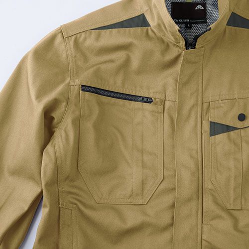 帯電防止JIS T8118適合のT/Cストレッチシャツスタイリッシュなシルエットとストレスフリーを実現脇・ノーフォーク部分にメッシュを使用、通気性を向上させ機能性も十分な納得のクオリティー! 伝統的な機能性を進化させつつ、シルエットにもこだわったT/Cストレッチシリーズ静電気対策が必要な現場でも着用できるように帯電防止JIS T8118に適合しています。ストレッチ生地をベースに、ジャケット背面にはノーフォークを、肘膝にはタックやダーツを備えることで動きやすさを向上させています。収納力についても定番のポケットの他に、ジャケットでは左胸スラッシュポケット、パンツでは右脇にファスナーポケットを備えています。またジャケット、パンツ共に背面に反射パイピングを施し暗所での安全性も確保しています。