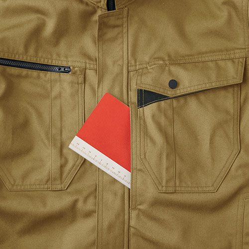 帯電防止JIS T8118適合のT/Cストレッチジャケット!スタイリッシュなシルエットとストレスフリーを実現機能性も十分な納得のクオリティ 伝統的な機能性を進化させつつ、シルエットにもこだわったT/Cストレッチシリーズ静電気対策が必要な現場でも着用できるように帯電防止JIS T8118に適合しています。ストレッチ生地をベースに、ジャケット背面にはノーフォークを、肘膝にはタックやダーツを備えることで動きやすさを向上させています。収納力についても定番のポケットの他に、ジャケットでは左胸スラッシュポケット、パンツでは右脇にファスナーポケットを備えています。また、ジャケット・パンツ共に背面に反射パイピングを施し暗所での安全性も確保しています。