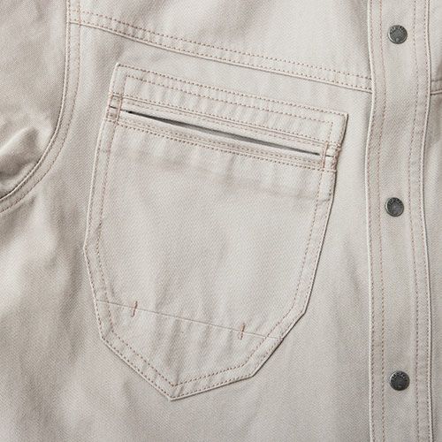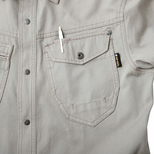 懐かしくも新しいスタイル、継承された機能性。これからの綿100%ワークウェア 通気性・吸水性に優れた高品質綿100%の生地をワンウォッシュし、さらに肌触り・風合いのよい仕上げをしたシリーズ上着の背面タック、パンツの膝ダーツにより動きやすさを向上多くのポケットをつくり高い収納力を備えたファスナー・ボタン・リベットはすべてYKKを採用ファスナーを保護するため、エレメント部分が隠せる仕様フロントファスナーに差し色を加え、風合いのある各カラーを引き立て、新しいスタイルを印象付けた。男女ユニセックス仕様