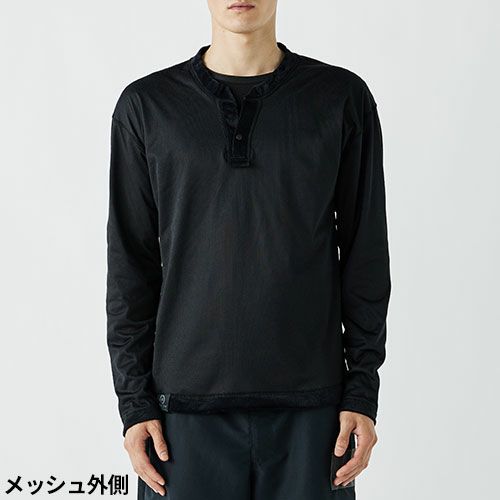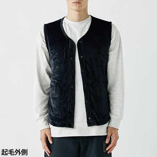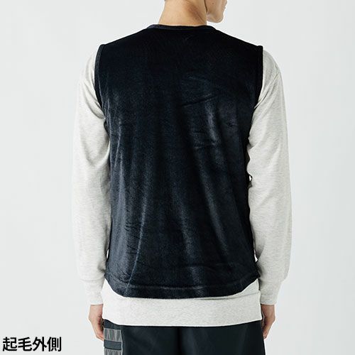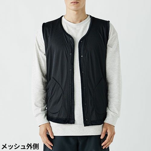 中空繊維+起毛メッシュ、フワッと暖かリバーシブルウェア 軽い、暖かい、ムレにくい理想のミドルレイヤー起毛面を内側に着用する【保温性重視】と起毛面を外側に着用する【スタイリング重視】の2通りの着用が可能なリバーシブル仕様