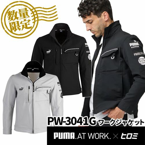 【数量限定】八王子リホームで有名なヒロミさんとPUMA.AT WORK.のコラボレーション商品!作業ウェア PUMA プーマ PUMA.AT WORK.×ヒロミコラボ ワークジャケット 作業服 メンズ ブルゾン PUMA WORKWEAR ジャケット PW-3041G ワーク マン 作業着 制服 通年作業着 秋冬 かっこいい 人気 ユニフォーム 黒 グレー 現場 DIY