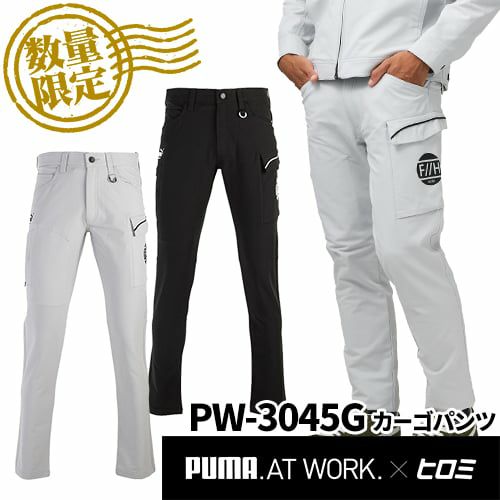 【数量限定】八王子リホームで有名なヒロミさんとPUMA.AT WORK.のコラボレーション商品!作業ウェア PUMA プーマ PUMA.AT WORK.×ヒロミコラボ カーゴパンツ 作業服 メンズ PUMA WORKWEAR パンツ PW-3045G ワーク マン 作業着 制服 通年作業着 秋冬 かっこいい おしゃれ 人気 ユニフォーム 黒 グレー 現場 DIY
