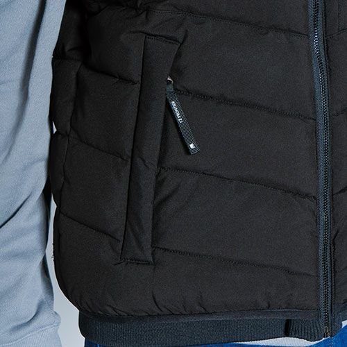 高密度タフタとフリースのボンディングで防風性と保温性も確保切り替え部分に反射材のパイピングを用い暗所での視認性も確保※ボンディング素材の為、ストレッチ性は軽微となります。