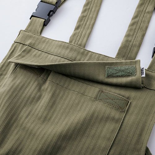 デザインと機能を兼ね備えた9540シリーズの新定番サロペット ストレッチ性のある変形ヘリンボン生地を使用し動きやすさと上質な風合いを実現 凹凸感のある織柄がやわらかな質感に仕上げています。 フロントのビッグポケットや複数のマルチポケットで高い収納力を実現 作業からデイリー、ストリートまで幅広く活躍する一着です。