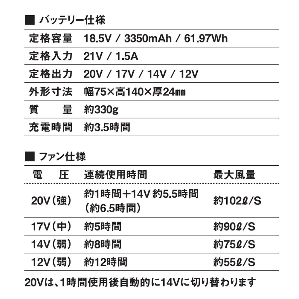 首元にペルチェも装着可!!!裏アルミ日傘遮熱マイナス11℃(MAX COOL) 紫外線による日焼けから肌をガード ●日傘遮熱:裏アルミコーティングの「日傘遮熱」でマイナス11℃●サイドファン:ファンが背中に干渉し辛く、着座時のストレスを軽減●ペルチェネックホルダー:首元にGP-854 ペルチェクーラーユニット(別売)装着が可能(ペルチェなしで空調ウェアのみの使用も可能)●衿ワイヤー入り:形状記憶ワイヤー入りで、風気路をつぶさず首元に風を効率的に送ることが可能●ヘルメット対応フード(着脱可):ヘルメットをかぶったままでも使用でき簡単に取り外しが可能●オリジナルチェーン刺繍:ミニマルなデザインに映えるクラシックな印象のチェーン刺繍