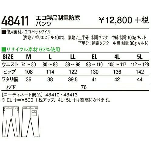 自重堂 パンツ 防寒パンツ ワークパンツ 防寒 ズボン 保温 人気 安い 防寒着 おしゃれ 暖かい 秋冬用 最強 かっこいい 作業着 おすすめ ワーク マン メンズ カジュアル 定番 寒さ対策 防寒ウェア 屋外作業 屋内作業 あったか シンプル 48411