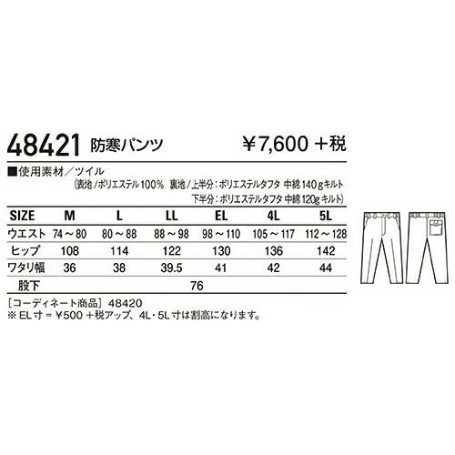 自重堂 パンツ 防寒パンツ ワークパンツ 防寒 ズボン 保温 人気 安い 防寒着 おしゃれ 暖かい 秋冬用 最強 かっこいい 作業着 おすすめ ワーク マン メンズ カジュアル 定番 寒さ対策 防寒ウェア 屋外作業 屋内作業 あったか シンプル 48421