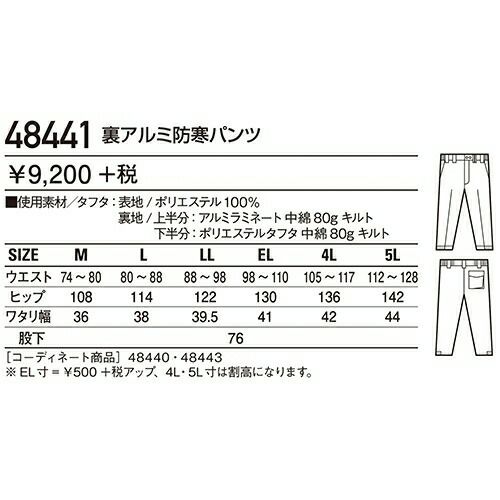 自重堂 パンツ 防寒パンツ ワークパンツ 防寒 ズボン 保温 人気 安い 防寒着 おしゃれ 暖かい 秋冬用 最強 かっこいい 作業着 おすすめ ワーク マン メンズ カジュアル 定番 寒さ対策 防寒ウェア 屋外作業 屋内作業 あったか シンプル 48441
