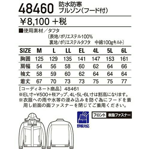自重堂 ブルゾン(フード付) 防寒ジャケット ドカジャン 保温 人気 安い ダウン 防寒着 防寒ジャンパー 上着 ブルゾン 最強 アウター おしゃれ 暖かい 秋冬 かっこいい 作業着 ワーク マン メンズ 寒さ対策 屋内作業 屋外作業 あったか 防寒グッズ 48460