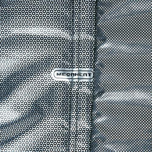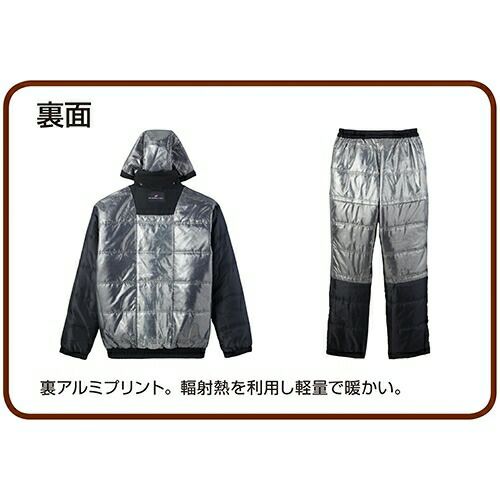 裏アルミプリントによる輻射熱(ふくしゃねつ)を利用し、魔法瓶効果で保温性を高めたアウトドアテイストの軽量防寒。