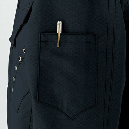 次世代を意識したカジュアルワークウエア。 ハニカムリップストップ素材や左胸ポケットの5連アイレットが特長。消臭・抗菌効果のあるDEO+テープの使用など、デザイン性と機能性を 兼ね備えた商品。