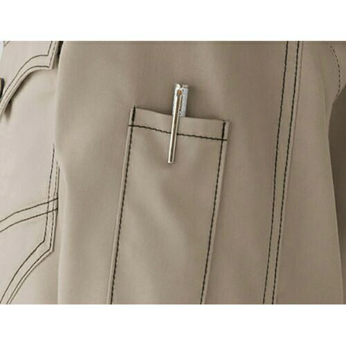 ソフトな風合いと独特の織柄が特長のミリタリー調ワークウエア。 アクセントの肩章や胸ポケットでハードなイメージ。 消臭・抗菌効果のあるDEO+テープやダブルポケットなど付加価値が高い商品。