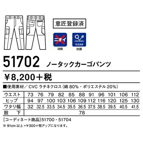 自重堂 Jawin 作業服 51702 ノータックカーゴ 秋冬 メンズ 作業着 ポケット付き ボトムス 通年 カーゴパンツ おしゃれ かっこいい 人気 ズボン 作業ズボン 作業パンツ 作業 工事 土木 塗装 DIY diy