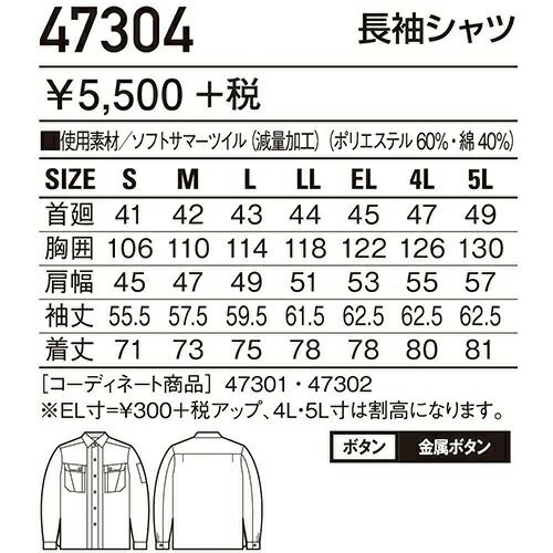 営業や建築業では、きっちりとした服装で信頼感を高めることが大切です。形態記憶仕様でいつでもシワを気にせず着用いただけます。また、シャツやワークスーツもご用意しているので、用途に合わせてお選びいただけます。