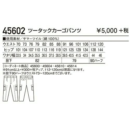 自重堂 作業服 45202 ツータックカーゴ 春夏 メンズ 作業着 ポケット付き ボトムス ワークウエア カーゴパンツ