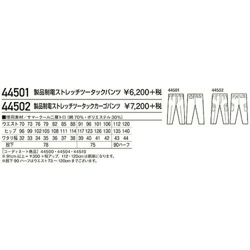 自重堂 作業服 44501 ツータックパンツ 春夏 メンズ 作業着 腿ポケット無 ボトムス ワークウエア スラックス