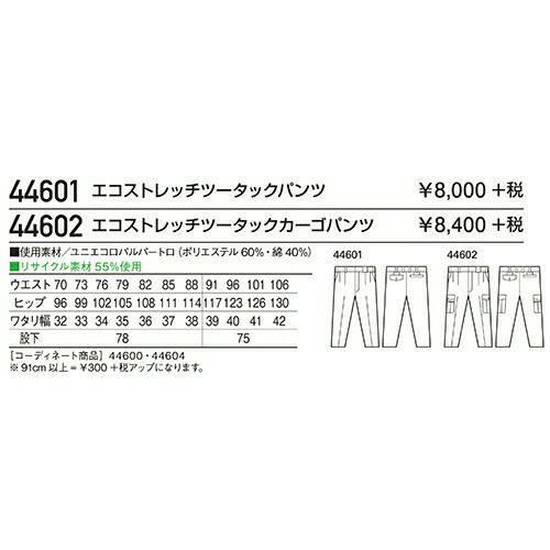 自重堂 作業服 44602 ツータックカーゴ 春夏 メンズ 作業着 ポケット付き ボトムス ワークウエア カーゴパンツ