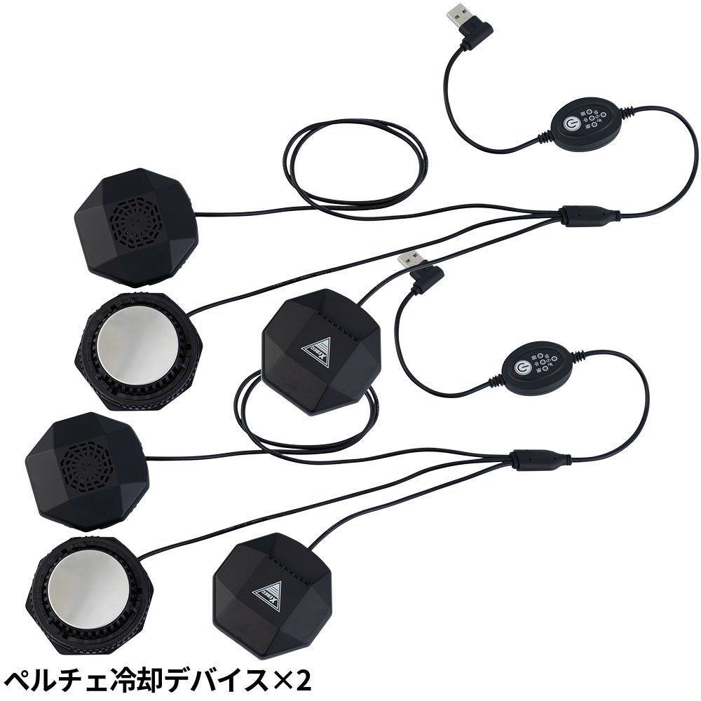 お手持ちのバッテリーで使える、ペルチェ素子6個搭載の冷却ベストセット。 ペルチェ素子6個を配置した冷却ベストとペルチェデバイス2個・充電コード2本のセット。モバイルバッテリーはお手持ちのものが使用可能(5V/2A以上推奨)。33017同等の通気性メッシュベストに保冷剤ポケット・バッテリー収納ポケットを装備。バッテリーを既にお持ちの方やバッテリーを別途選びたい方に最適な2026SS新商品。